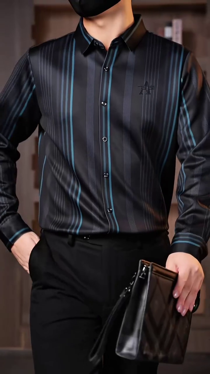Men’s Black Vertical Stripe Formal Shirt with Contrast Detailing