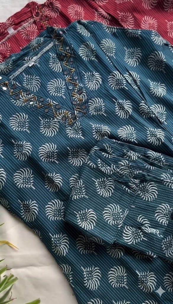 Designed for modern lifestyles, this kurta and pant set is easy to maintain. The cotton fabric is simple to wash, quick to dry, and retains its shape and color well over time. With basic care, it continues to look fresh and elegant, wear after wear.