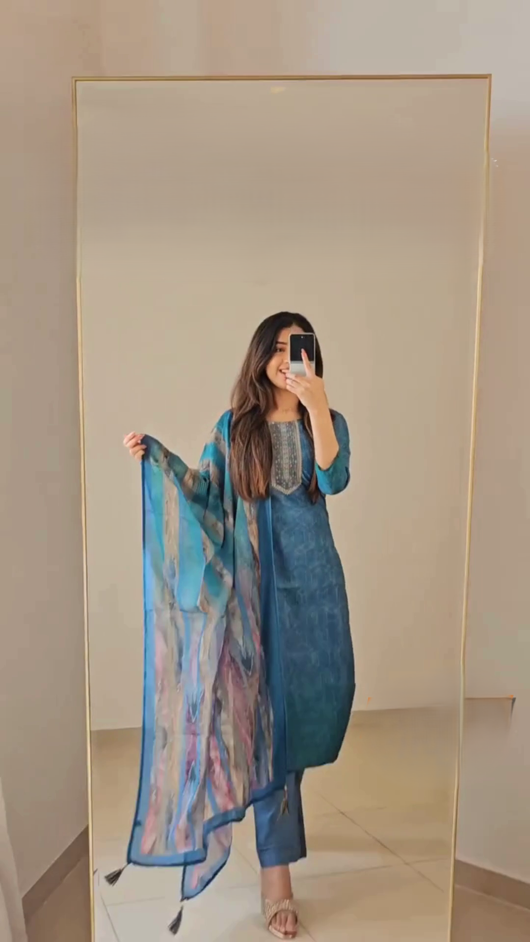 Latest Party Wear Cotton Blend Printed Kurti Pant With Dupatta Set